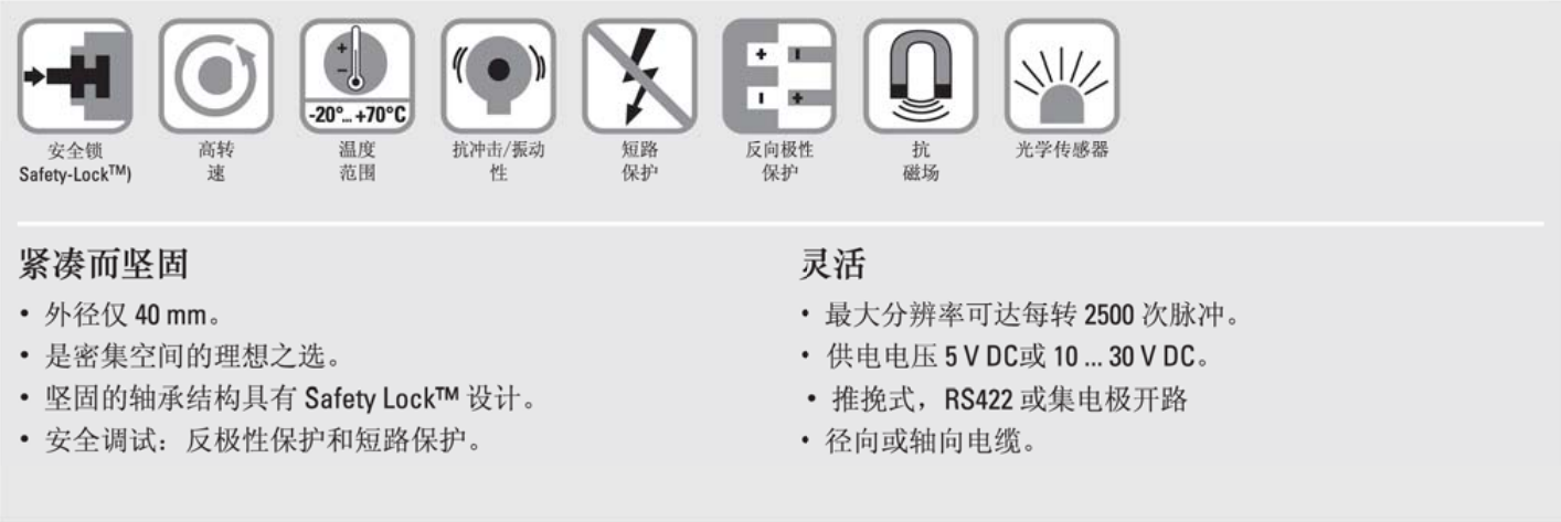 • 緊湊型增量編碼器Sendix KIS40/KIH40采用光學傳感器技術,為最大限度的降低經濟成本設計